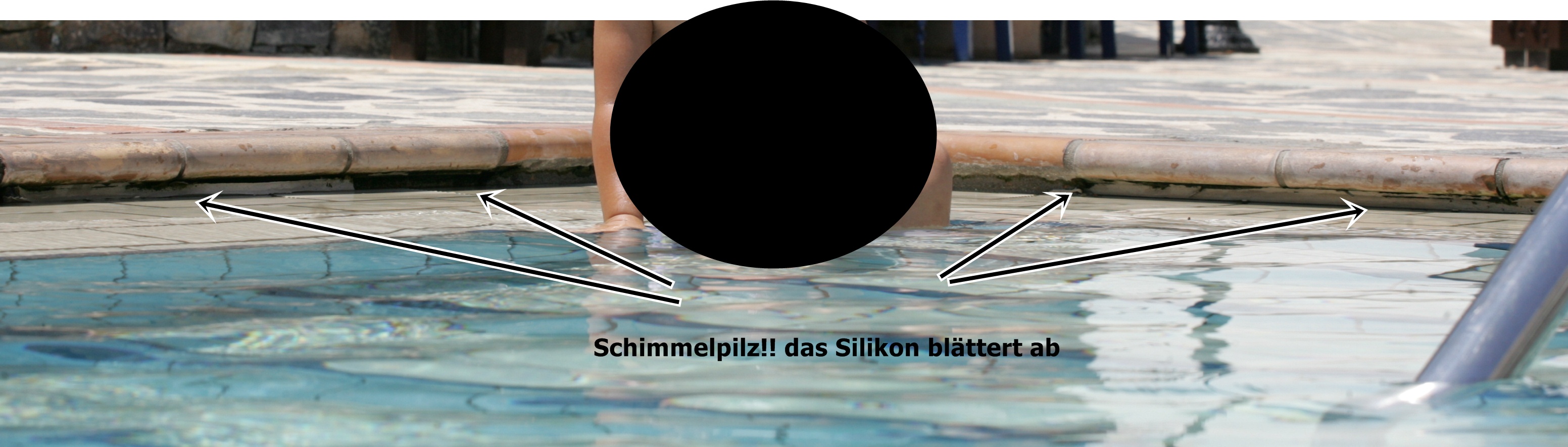 sehen war. Der Poolrand hatte auf den Fliesen einen